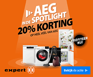 Bij Expert profiteer je twee weken lang van de AEG in de Spotlight actie. Profiteer van 20% korting op o.a. Wasmachines, Drogers, Vaatwassers, Kookplaten, Stofzuigers én meer. Bovendien geldt op een select aantal producten cashback-voordeel dat kan oplopen tot wel 100 euro, kortom DUBBEL VOORDEEL op AEG. Deze actie is geldig van zaterdag 11 t/m zondag 26 april 2026. Je spaart tot 3 ippies per euro bij Expert.